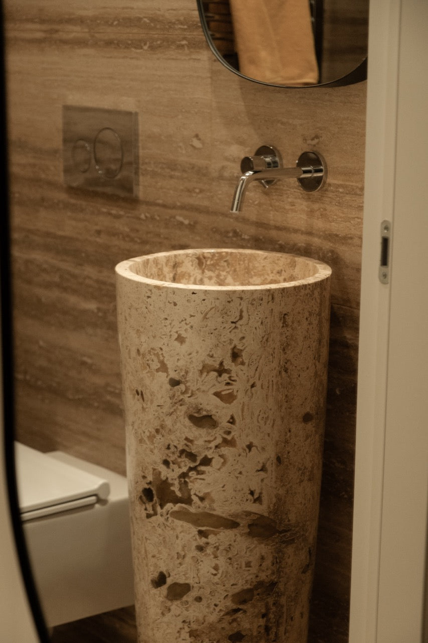 The intervention was developed with particular attention to the balance between functionality, comfort, and aesthetic quality, through the use of Travertino Romano Silver and Travertino Romano Classico, selected for their ability to bring depth, continuity, and character to the spaces.